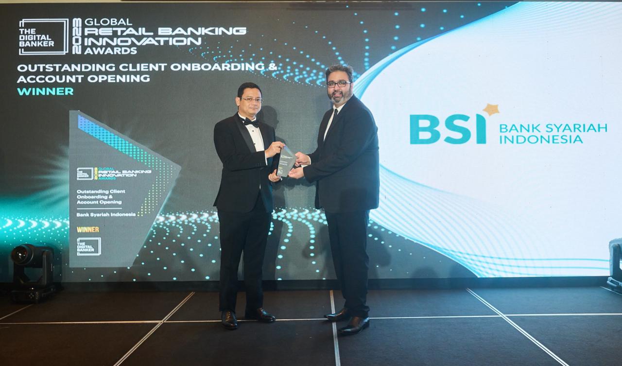 Jakarta, 23 Oktober 2023 - PT Bank Syariah Indonesia Tbk. (BSI) berhasil membuktikan komitmennya untuk memberikan customer experience terbaik dengan pengembangan produk dan layanan melalui transformasi digital. Terbaru, BSI berhasil mendapatkan penghargaan internasional sebagai Outsanding Client Onboarding & Account Opening, dalam ajang Global Retail Banking Innovation Awards 2023 yang diselenggarakan oleh The Digital Banker di Singapura (19/10).