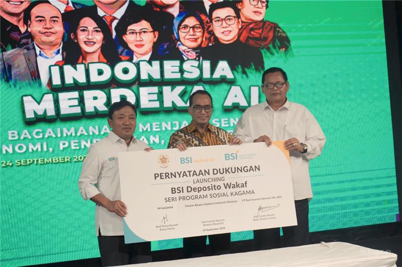 Jakarta, 25 September 2025 – PT Bank Syariah Indonesia Tbk (BSI) bersama Pengurus Pusat Keluarga Alumni Universitas Gadjah Mada (PP KAGAMA) hari ini meresmikan kolaborasi strategis melalui peluncuran BSI Deposito Wakaf Seri Program Sosial KAGAMA. Inisiatif ini menandai langkah awal pembentukan Dana Abadi KAGAMA berbasis wakaf uang dengan target penghimpunan dana mencapai Rp10 miliar.
