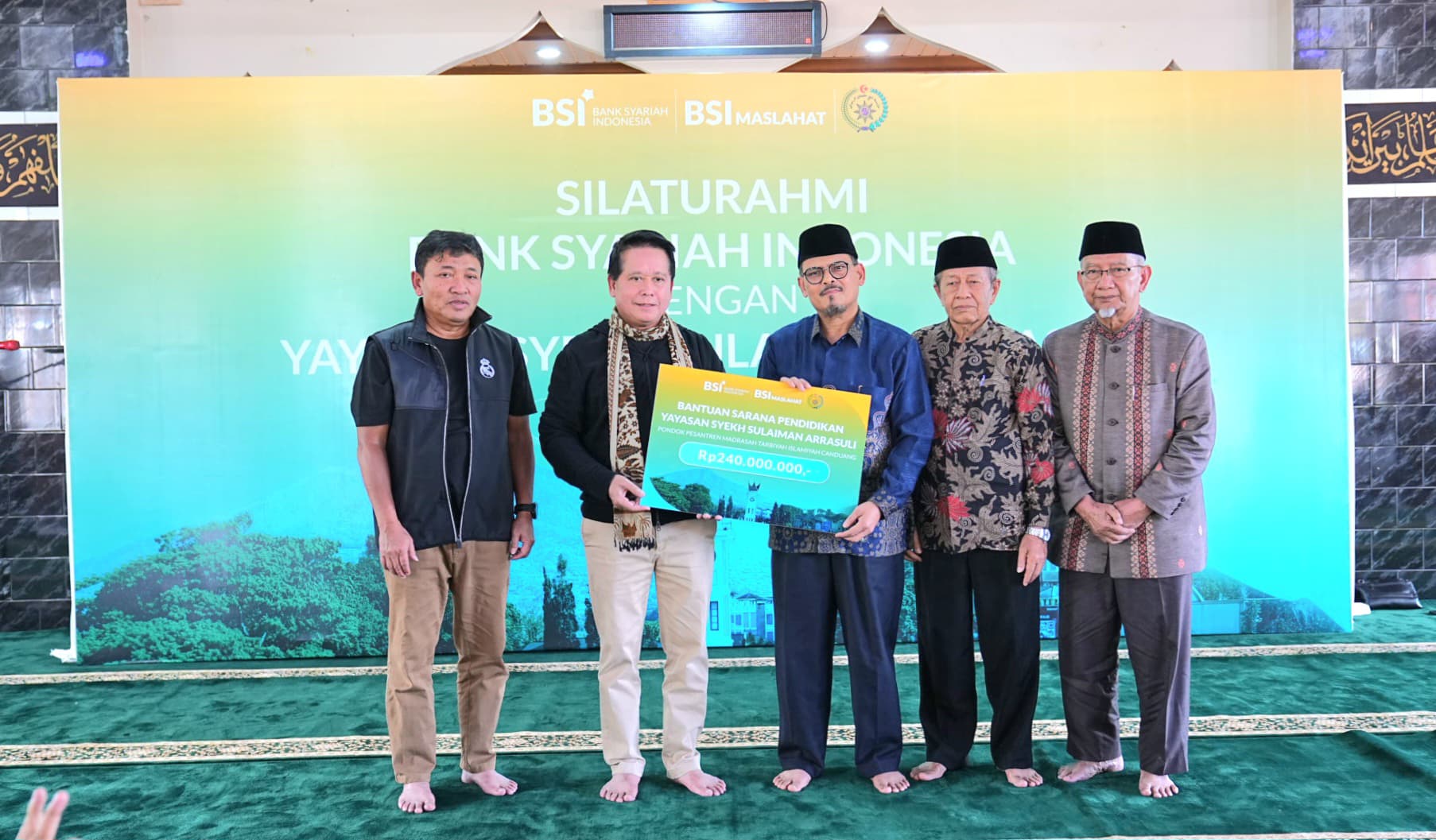 Dana bantuan untuk pengembangan infrastruktur pesantren diserahkan Direktur Utama BSI Hery Gunardi kepada Pimpinan Pondok Pesantren Arrasuli Bukittinggi Prof.Dr.H.Syukri Ikra, M.Ag pada Minggu 16 Maret 2025.