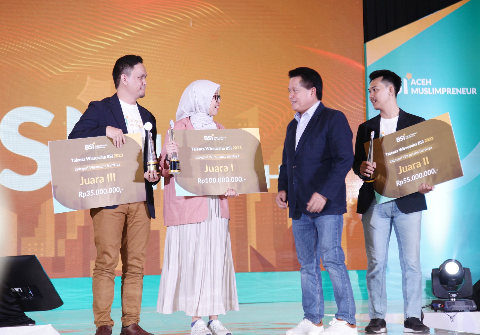 Pada Awarding Talenta Wirausaha BSI dan BSI Aceh Muslimpreneur ini telah membuka jalan bagi 27 orang wirausaha muda yang siap bersaing di pasar lokal maupun internasional lewat program Talenta Wirausaha BSI dan Aceh Muslimpreneur 2023. Sebanyak 27 orang ini terbagi dari 12 pemenang Program Talenta Wirausaha BSI dan 15 orang pemenang Aceh Muslimpreneur.