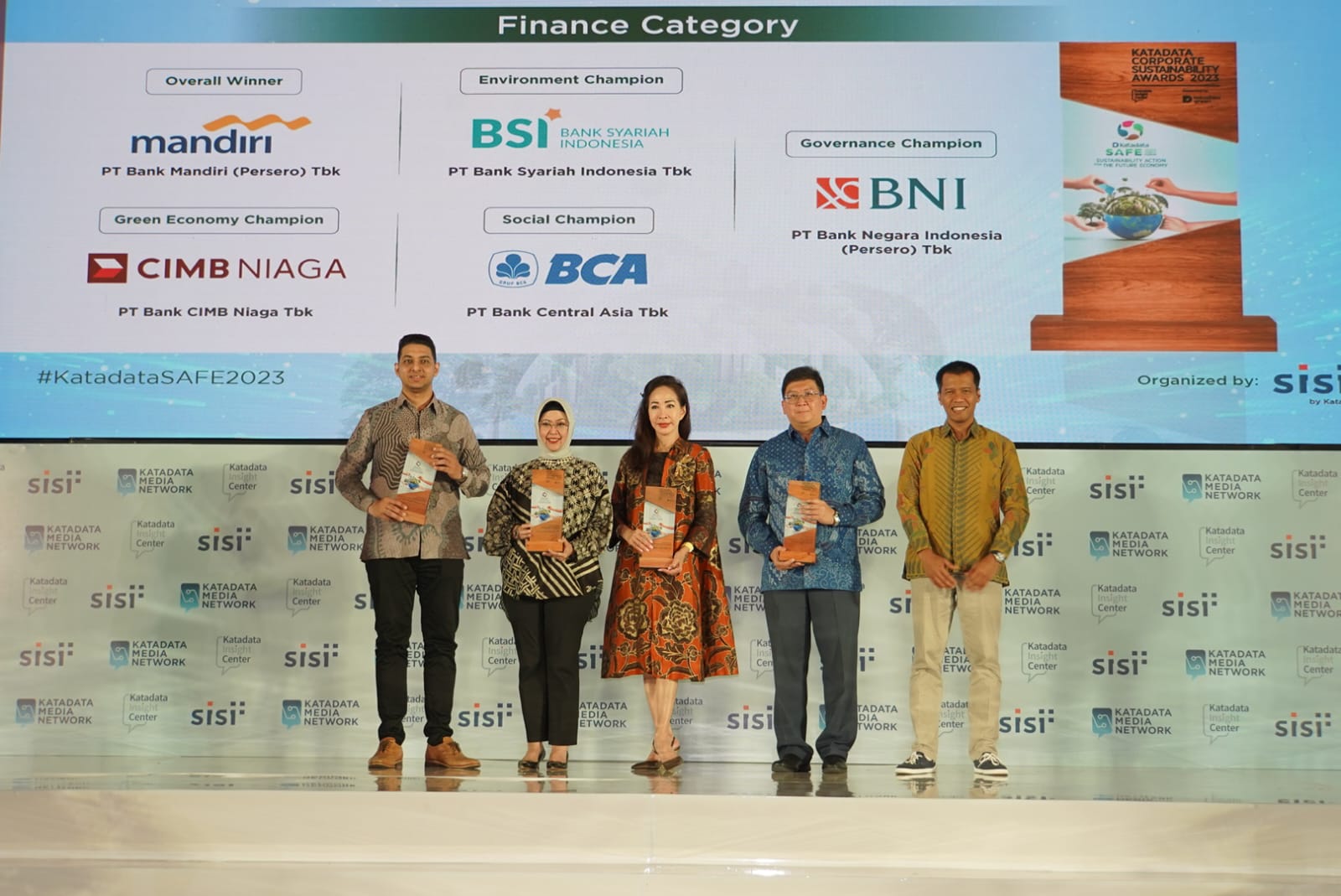 Atas konsistensi BSI dalam mengimplementasikan ESG, Katadata dalam acara juga mendaulat BSI sebagai pemenang di kategori environment dalam Katadata Corporate Sustainability Awards. Penghargaan diterima oleh Direktur Compliance & Human Capital BSI Tribuana Tunggadewi di Hotel Kempinsky, Selasa (26/9) malam.