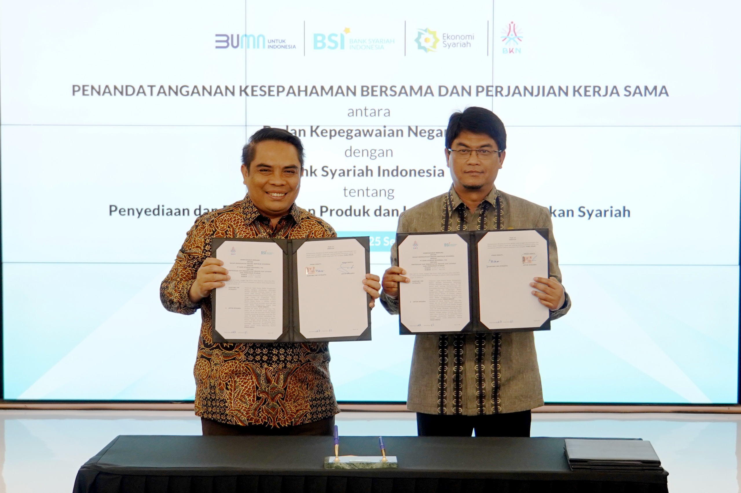BSI pun terus membuka peluang kerja sama payroll dengan stakeholder terkait. Sementara itu untuk hari ini, Kamis (26/9), BSI memperkuat posisi payroll dengan menggandeng Badan Kepegawaian Negara (BKN). Terkait upaya strategis ini, Plt. Kepala BKN, Haryomo Dwi Putranto, mengatakan BSI dan BKN menandatangani kerja sama yang menyepakati penyaluran gaji pegawai sebanyak 2.374 PNS dan PPPK BKN di seluruh Indonesia.