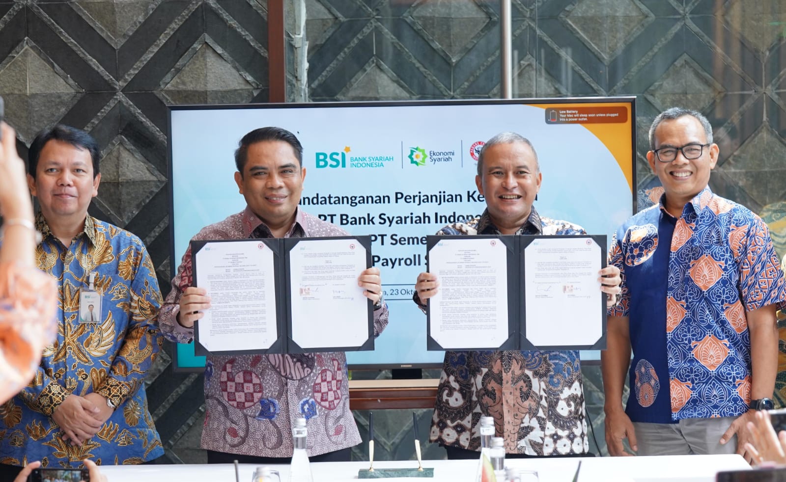 Jakarta, 24 Oktober 2023 — PT Bank Syariah Indonesia Tbk. (BSI) terus memperdalam penetrasi inklusi keuangan syariah, yang kali ini bersinergi dengan PT Semen Padang untuk mengelola pembayaran gaji karyawan anak usaha PT Semen Indonesia (Persero) Tbk. tersebut.