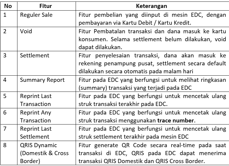 | 3. | Fitur apa saja yang ada pada BSI EDC? | ![]() |
