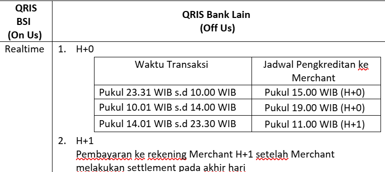 | 6. | Per Kapan Settlement QRIS Off Us H+0 dapat digunaka? | 8 Agustus 2025 Proses pengajuan:
