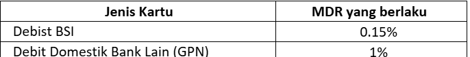 | 11. | Apa itu MDR (Merchant Discount Rate)? | MDR adalah biaya yang dikenakan kepada merchant atas setiap transaksi yang diproses melalui EDC BSI. Biaya ini berbeda-beda tergantung jenis kartu & QRISnya. |
