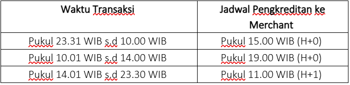 2. Kartu Pembayaran ke rekening Merchant H+1 setelah Merchant melakukann settlement pada akhir hari |