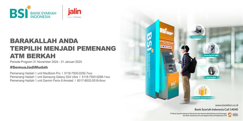 Barakallah Kami ucapkan selamat kepada pemenang peraih Hadiah Utama di Program ATM Berkah periode November 2024-Januari 2025.