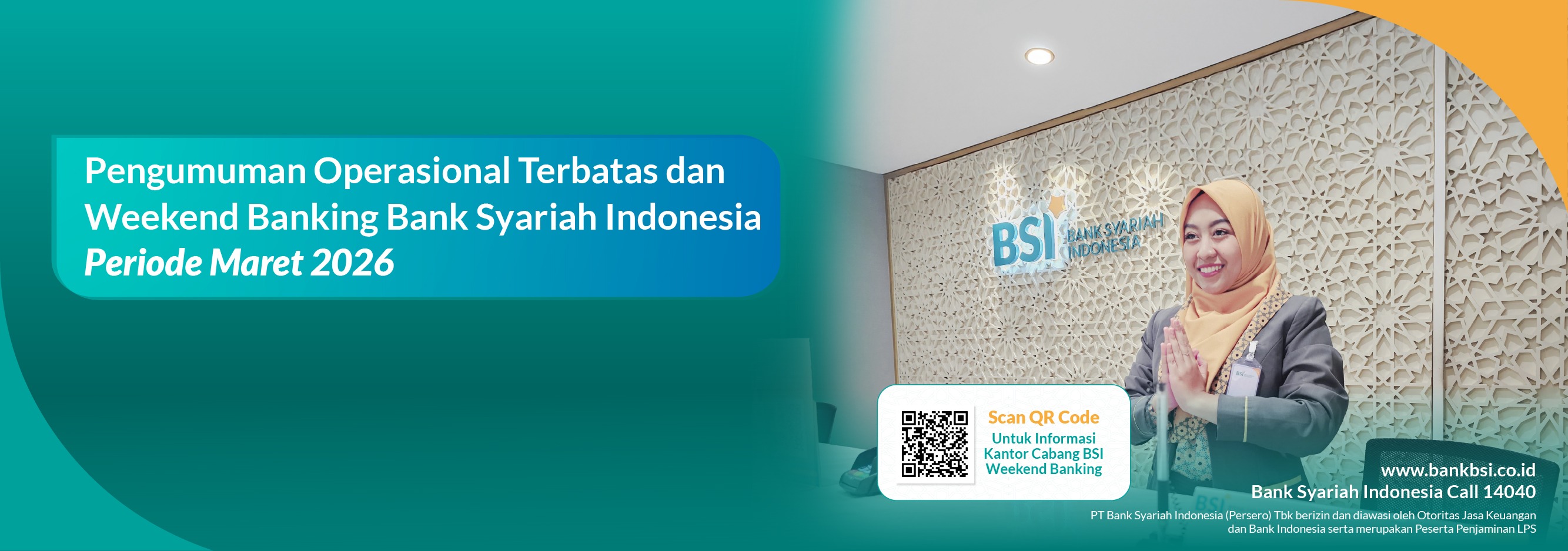 Berikut kami informasikan jadwal weekend banking layanan kantor cabang periode Maret 2026 yang dapat discan melalui QR Code dibawah ini: