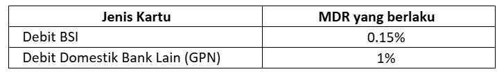 MDR adalah biaya yang dikenakan kepada merchant atas setiap transaksi yang diproses melalui EDC BSI. Biaya ini berbeda-beda tergantung jenis kartu & QRISnya.