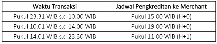 Pembayaran ke rekening Merchant H+1 setelah Merchant melakukan settlement pada akhir hari