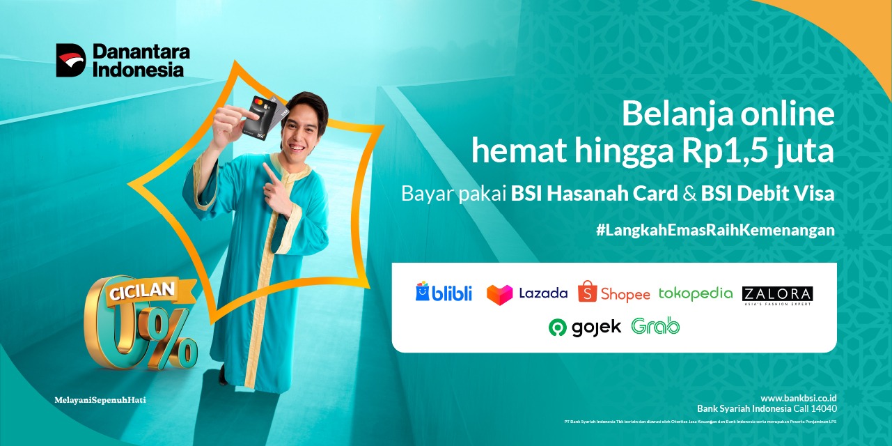 - Diskon 5% hingga Rp 1,5 juta min. transaksi Rp 2 juta kode promo BSIMILAD5 (kuota 7 trx/bulan)