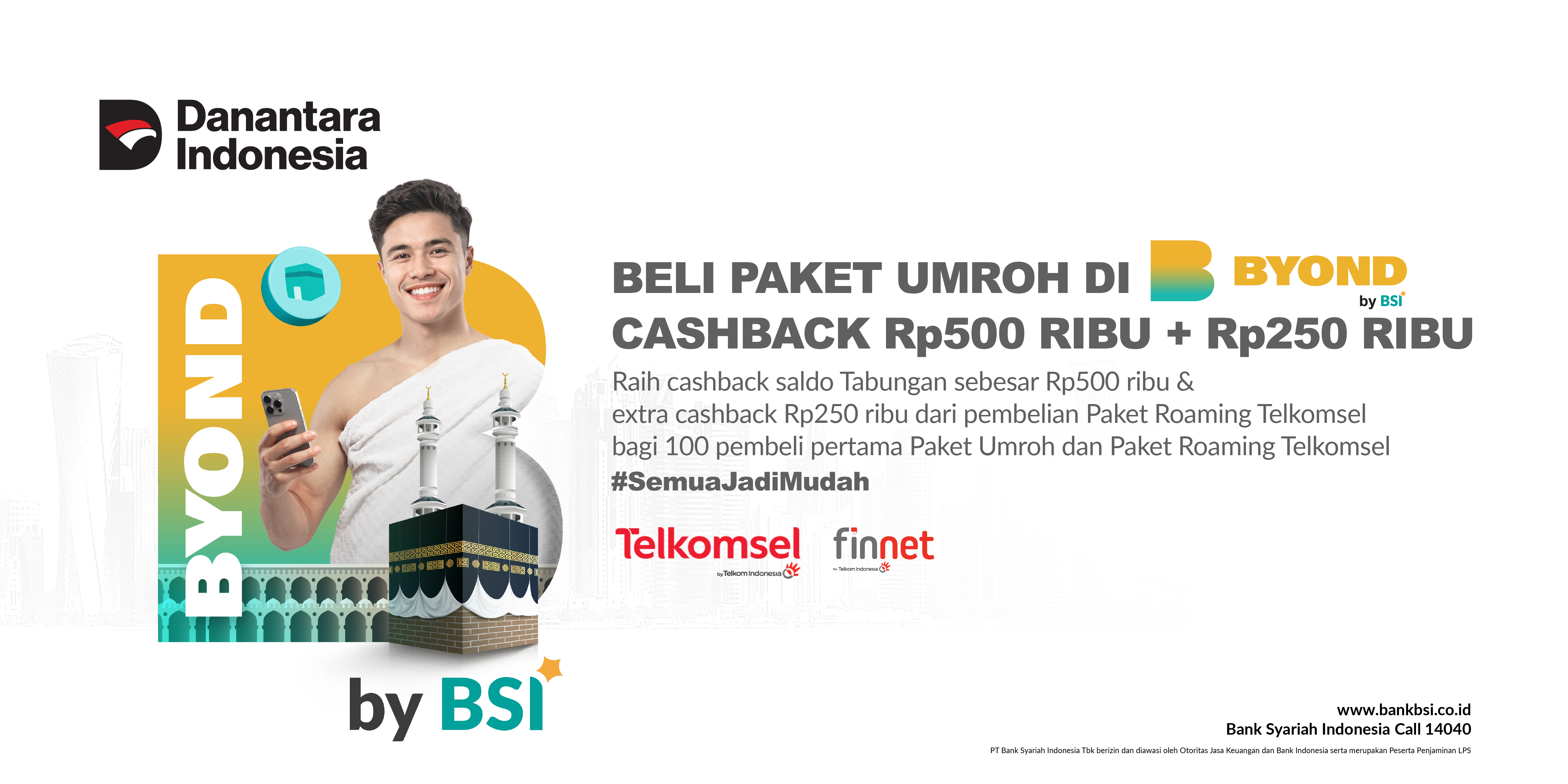 | 6. | Apakah promo ini berlaku untuk semua pembelian paket umrah? | Ya, berlaku untuk semua paket umroh yang tersedia di aplikasi BYOND by BSI serta paket data umrah Telkomsel yang telah dibeli oleh nasabah pe,beli paket data umrah Telkomsel. |
