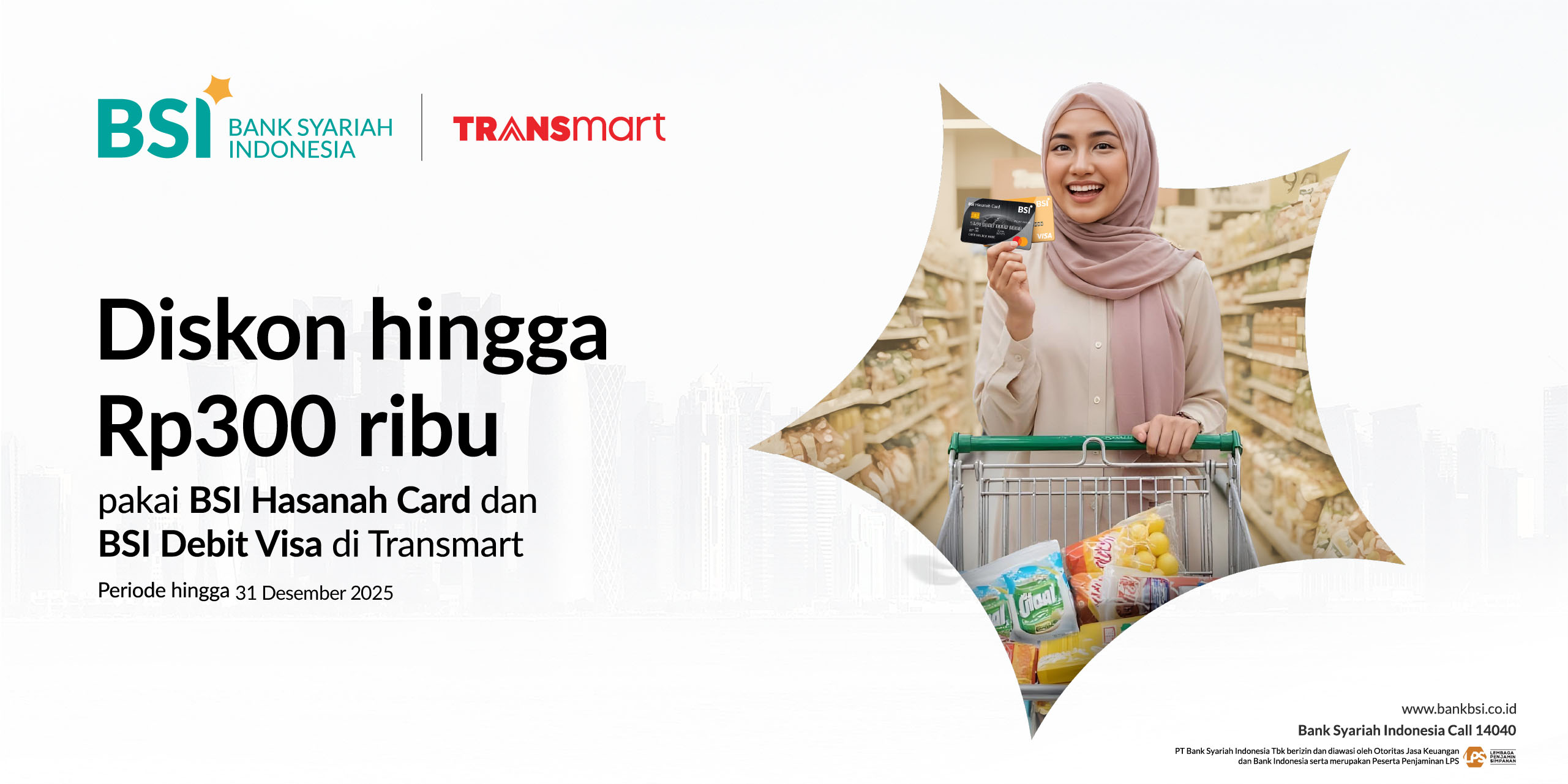 - Promo berlaku untuk seluruh jenis BSI Hasanah Card (Classic, Gold, & Platinum) dan BSI Debit Visa