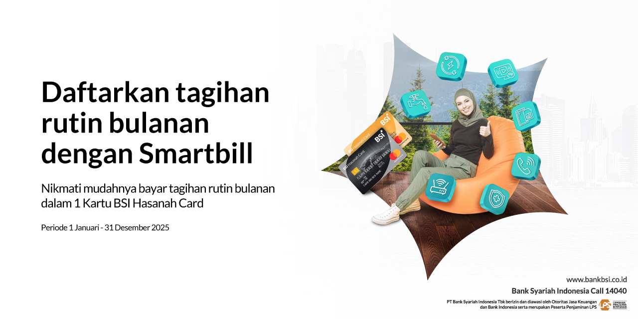 Smartbill merupakan fitur BSI Hasanah Card yang memudahkan pemegang kartu melakukan pembayaran tagihan rutin bulanan secara autodebet berupa: