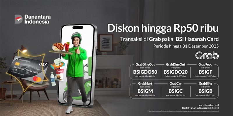 | Nama Program | Diskon hingga Rp 50 ribu menggunakan BSI Hasanah Card di aplikasi Grab |