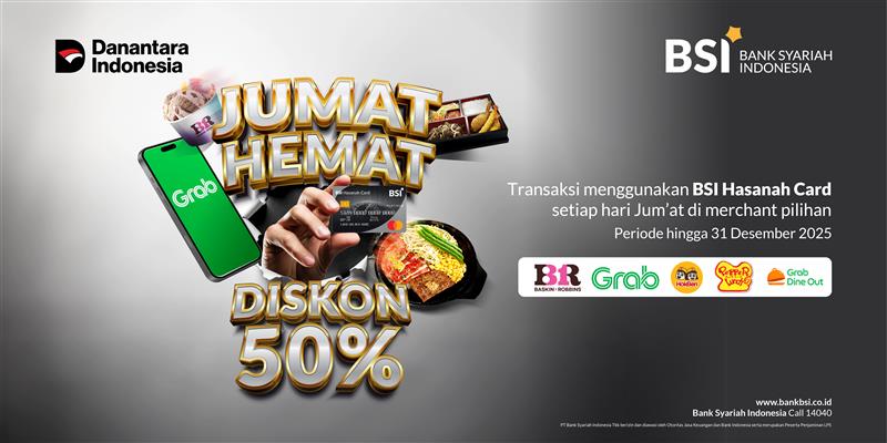 Diskon 50% hingga Rp 150.000,- minimal transaksi Rp 250.000,- berlaku setiap hari Jum’at |