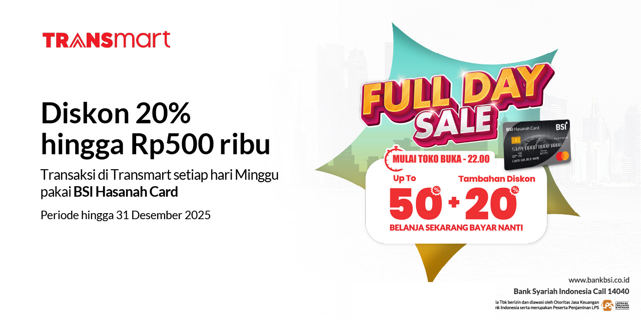 | Mekanisme Program | Diskon akan memotong nominal secara langsung ketika pemegang kartu melakukan pembayaran sesuai syarat dan ketentuan program di store Transmart dengan menggunakan BSI Card. |
