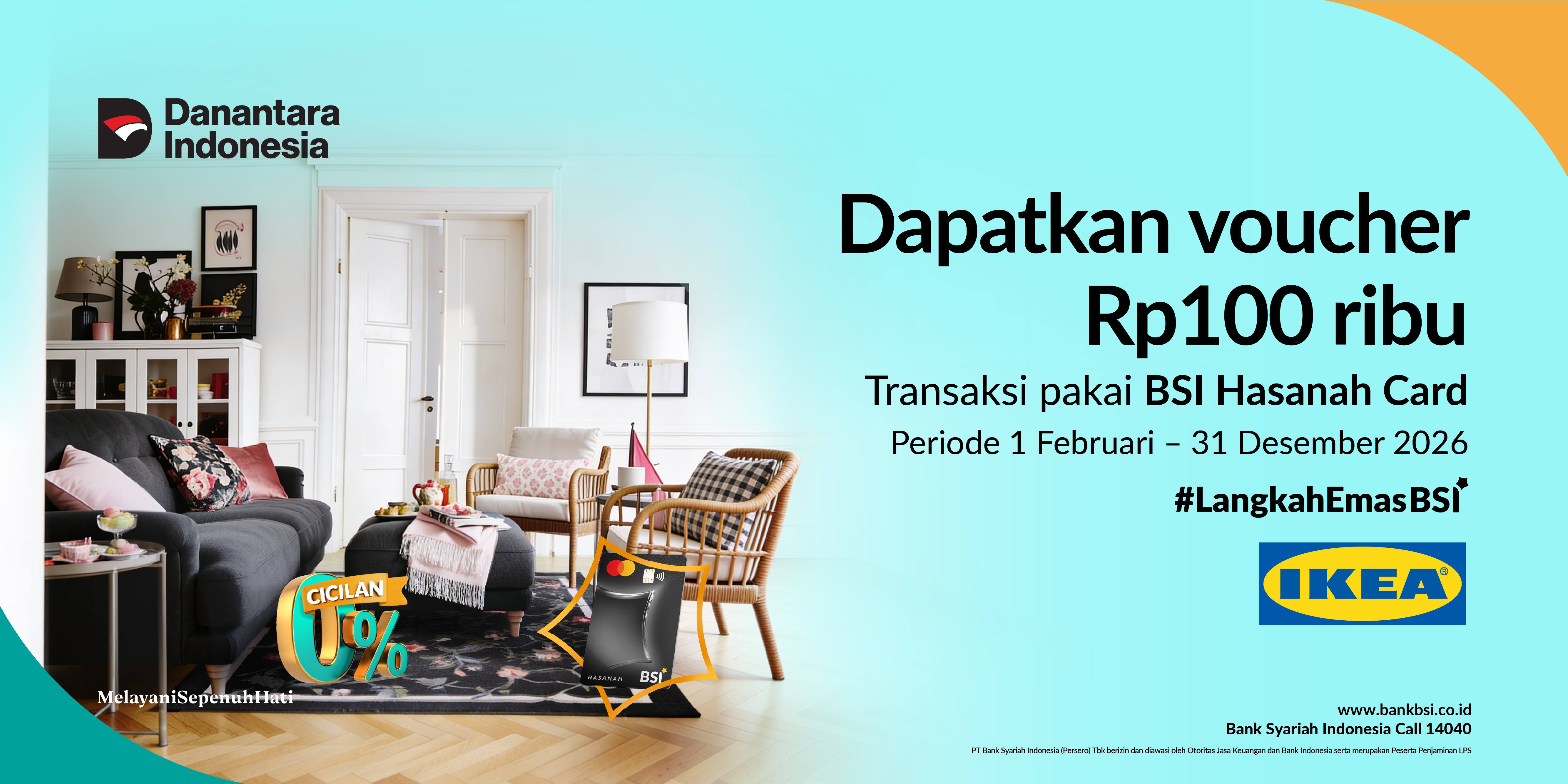 | Bentuk Program | Hadiah IKEA Voucher / e-Voucher Rp100 ribu dan Cicilan 0% hingga 24 bulan |