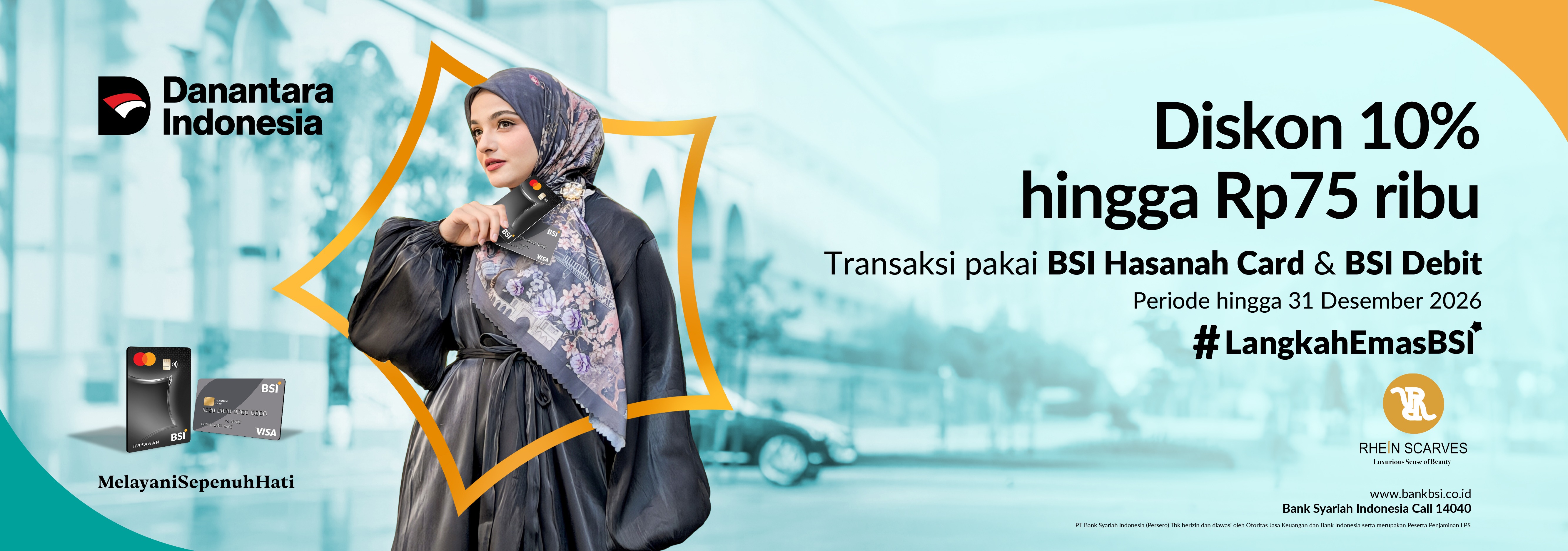 | Mekanisme Program | Diskon akan memotong nominal transaksi pemegang BSI Debit dan Hasanah Card di Rhein Scraves sesuai syarat & ketentuan transaksi. |