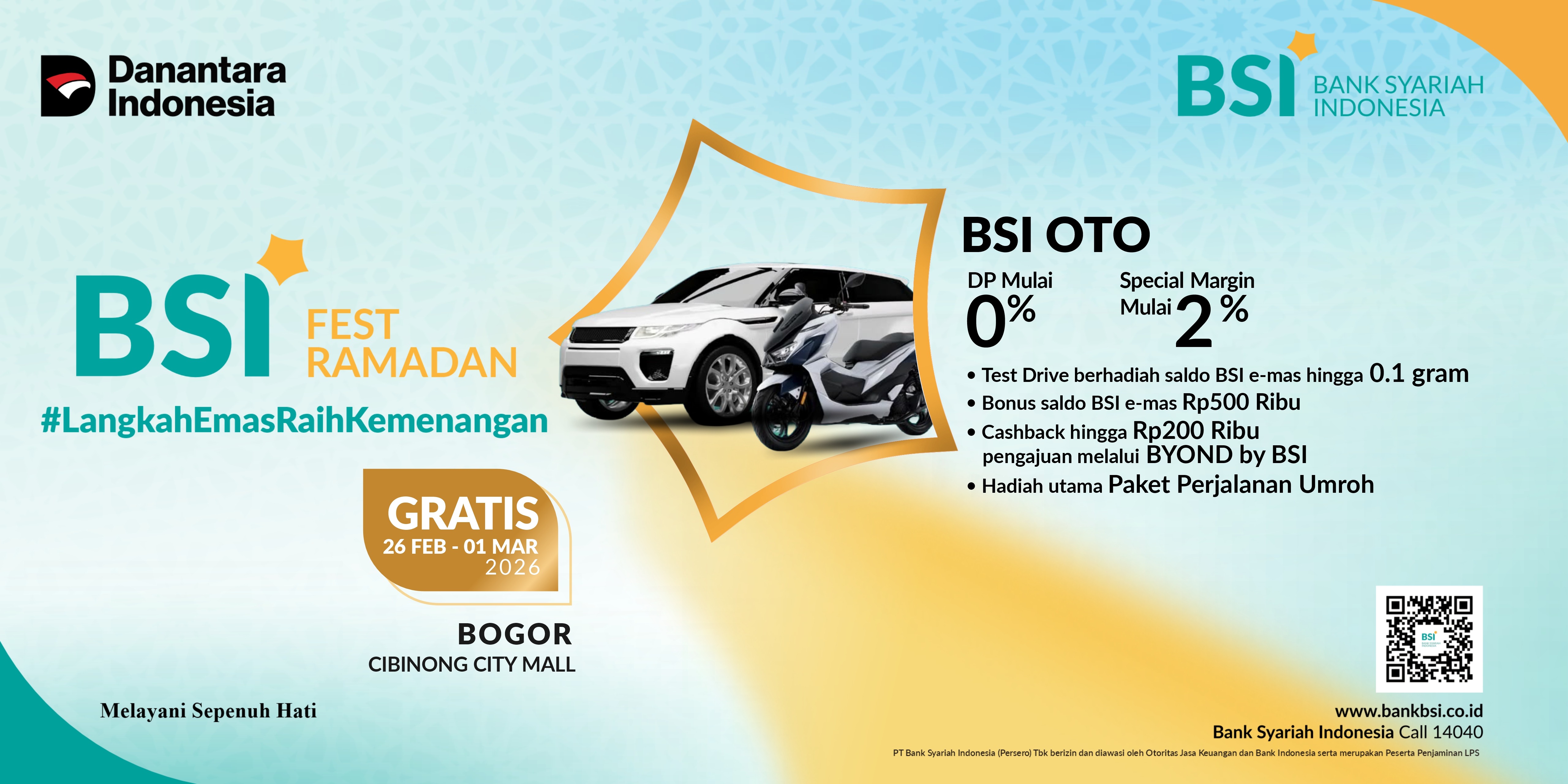 Event yang diselenggarakan oleh BSI dalam rangka menyambut Bulan Ramadhan dan Idul Fitri 2026 dengan mengusung tema Langkah Emas Ramadhan Fest 2026 #melayanisepenuhhati serta peran BSI sebagai:
