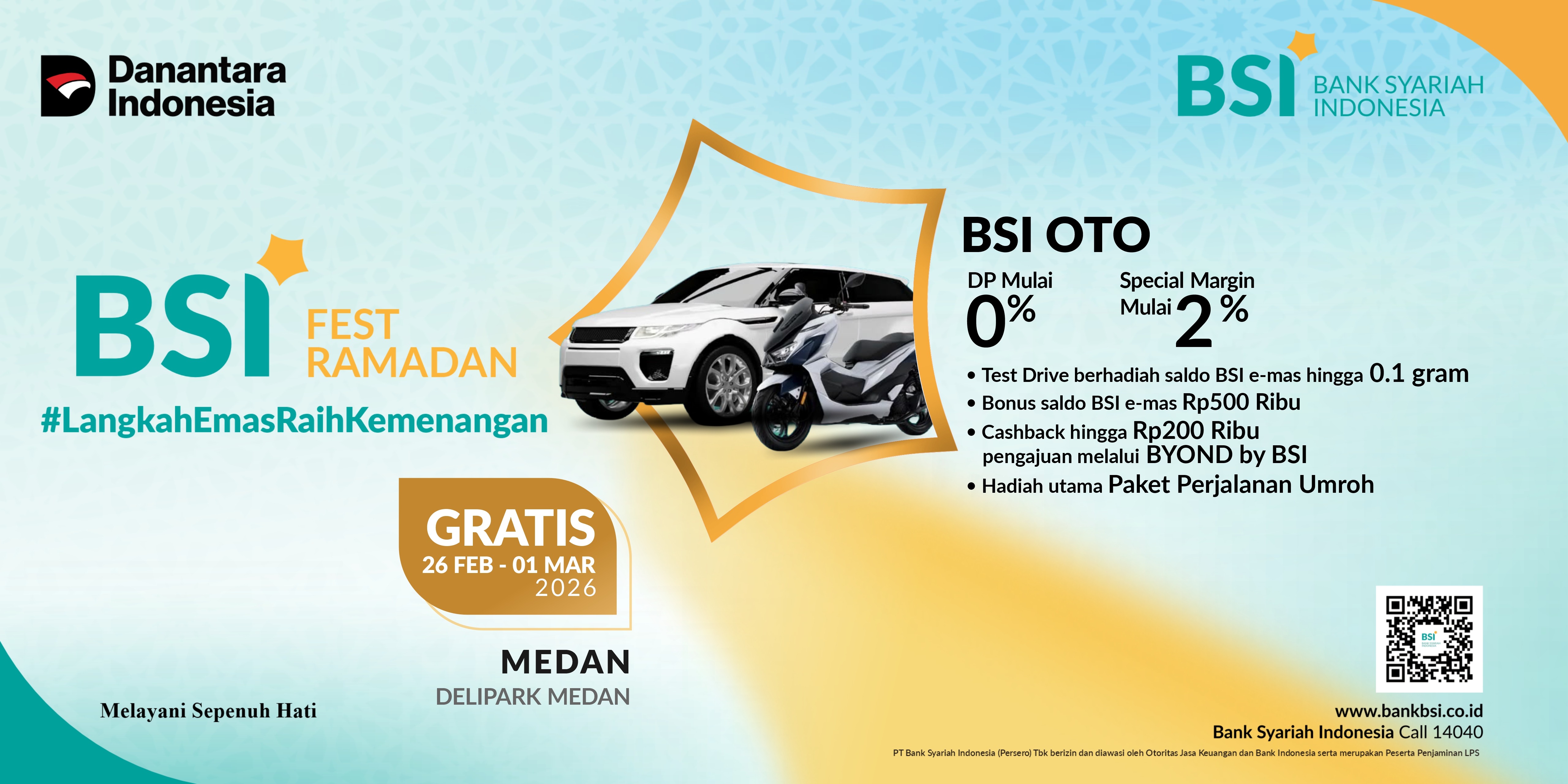 Event yang diselenggarakan oleh BSI dalam rangka menyambut Bulan Ramadhan dan Idul Fitri 2026 dengan mengusung tema Langkah Emas Ramadhan Fest 2026 #melayanisepenuhhati serta peran BSI sebagai: