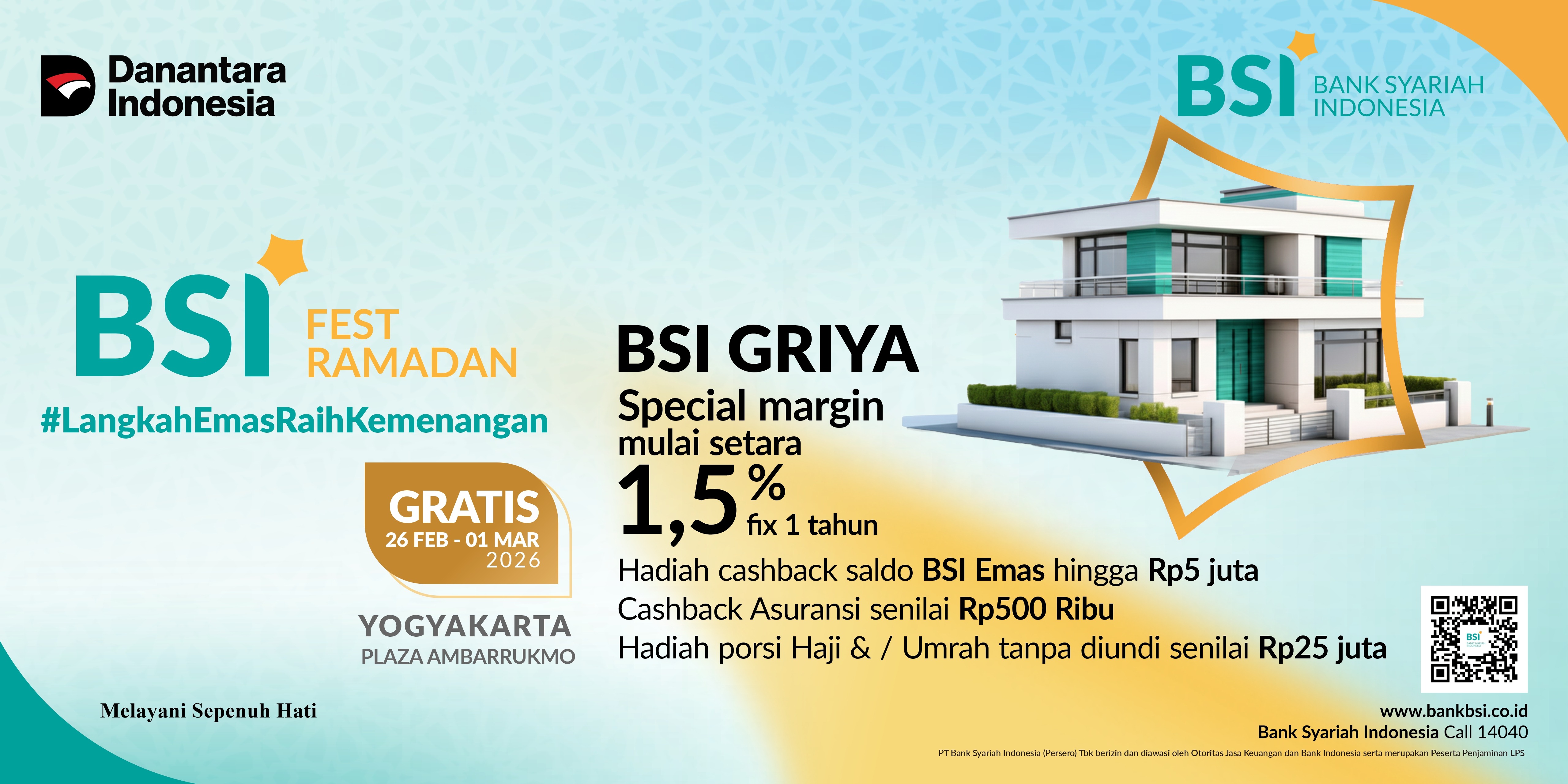 | 3. | Berapa lama periode Program BSI Griya Ramadhan? | Periode Program BSI Griya Ramadhan berlaku dari 16 Februari 2026 sd 31 Maret 2026. | ||||||||||||||