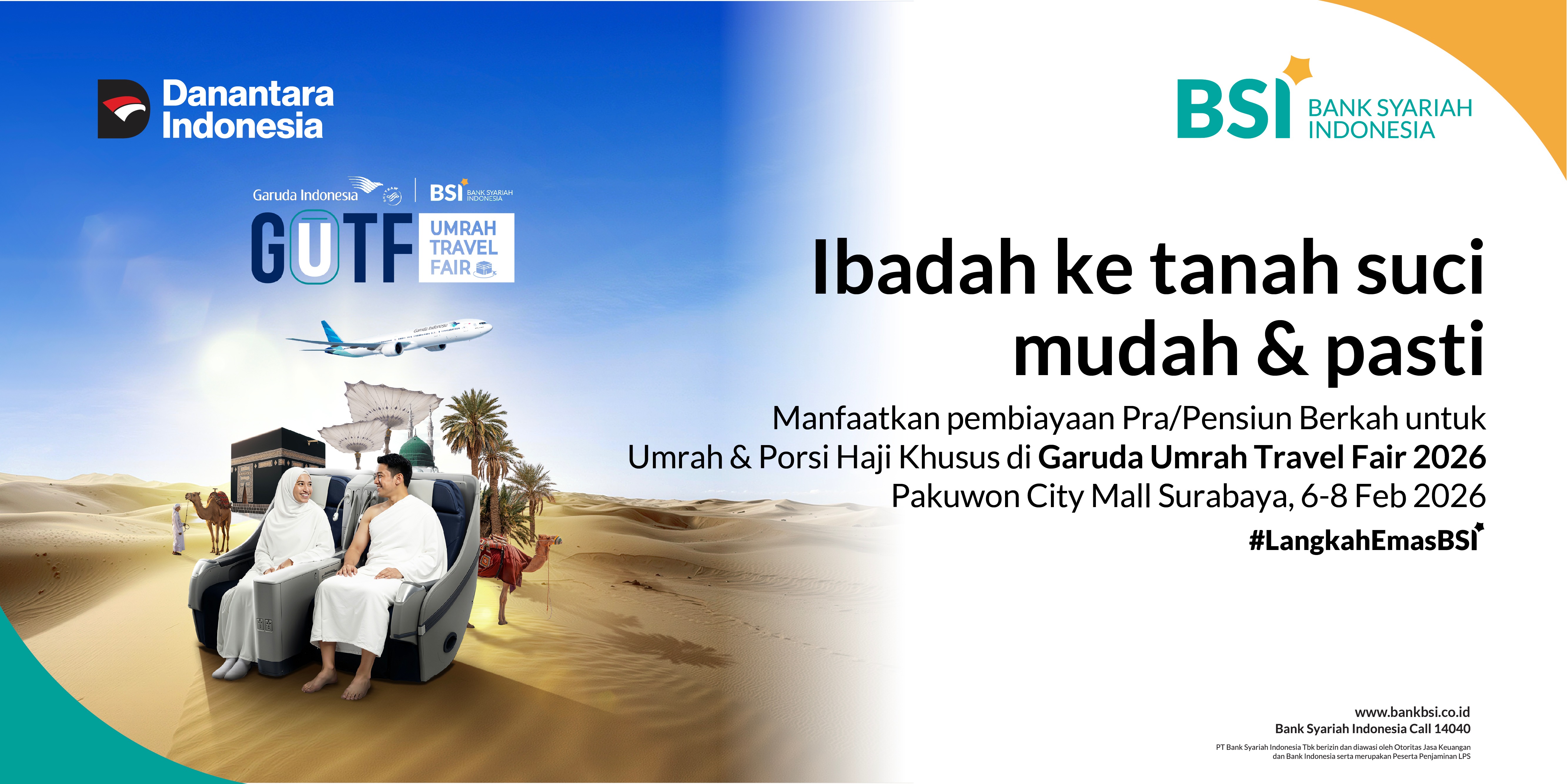 4. Bagaimana mekanisme pengajuan Nasabah untuk mengikuti program BSI Pra/Pensiun Umrah & Haji Khusus pada event GUTF?  Nasabah dapat mengunjungi booth BSI pada event GUTF di Makassar dan Surabaya yang akan dilaksanakan pada tanggal 6-8 Februari 2026.