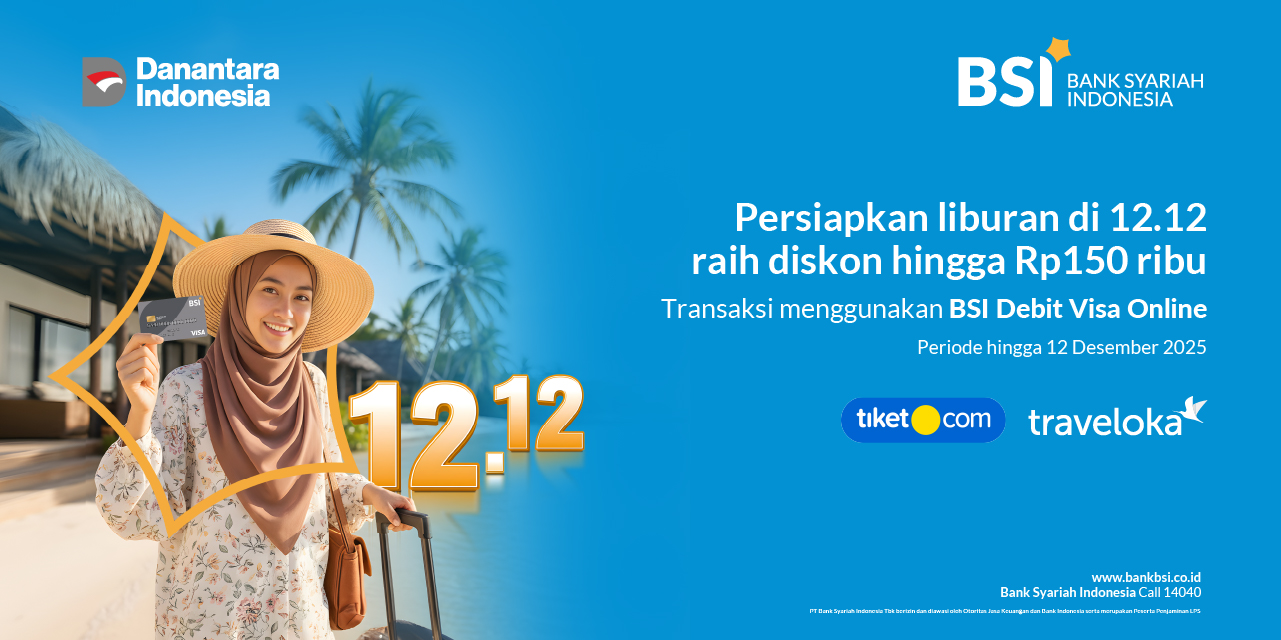 | 1. | Traveloka | Diskon Rp 100.000,- minimal transaksi Rp 1.500.000,- | 1 – 31 Desember 2025 | BSIVISA100 |