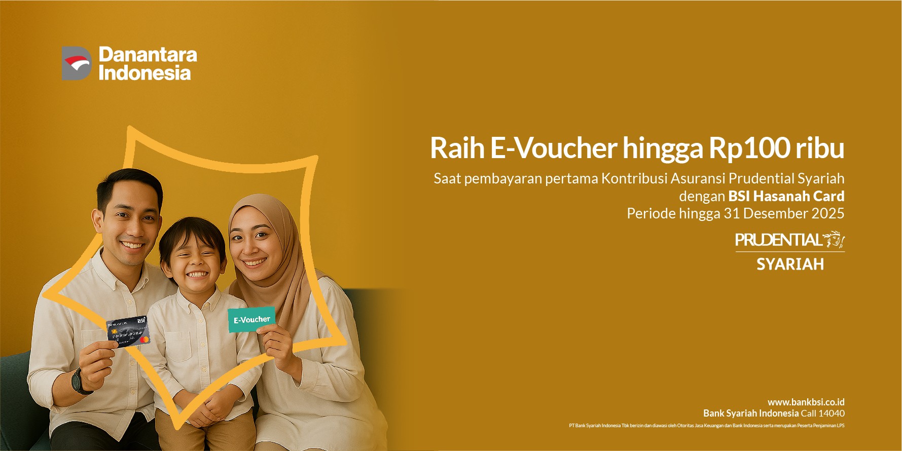 | Definisi Program | Program bonus e-Voucher kepada pemegang kartu BSI Hasanah Card atas pembayaran kontribusi pertama Asuransi Prudential Syariah selama periode program. | ||||||||||||