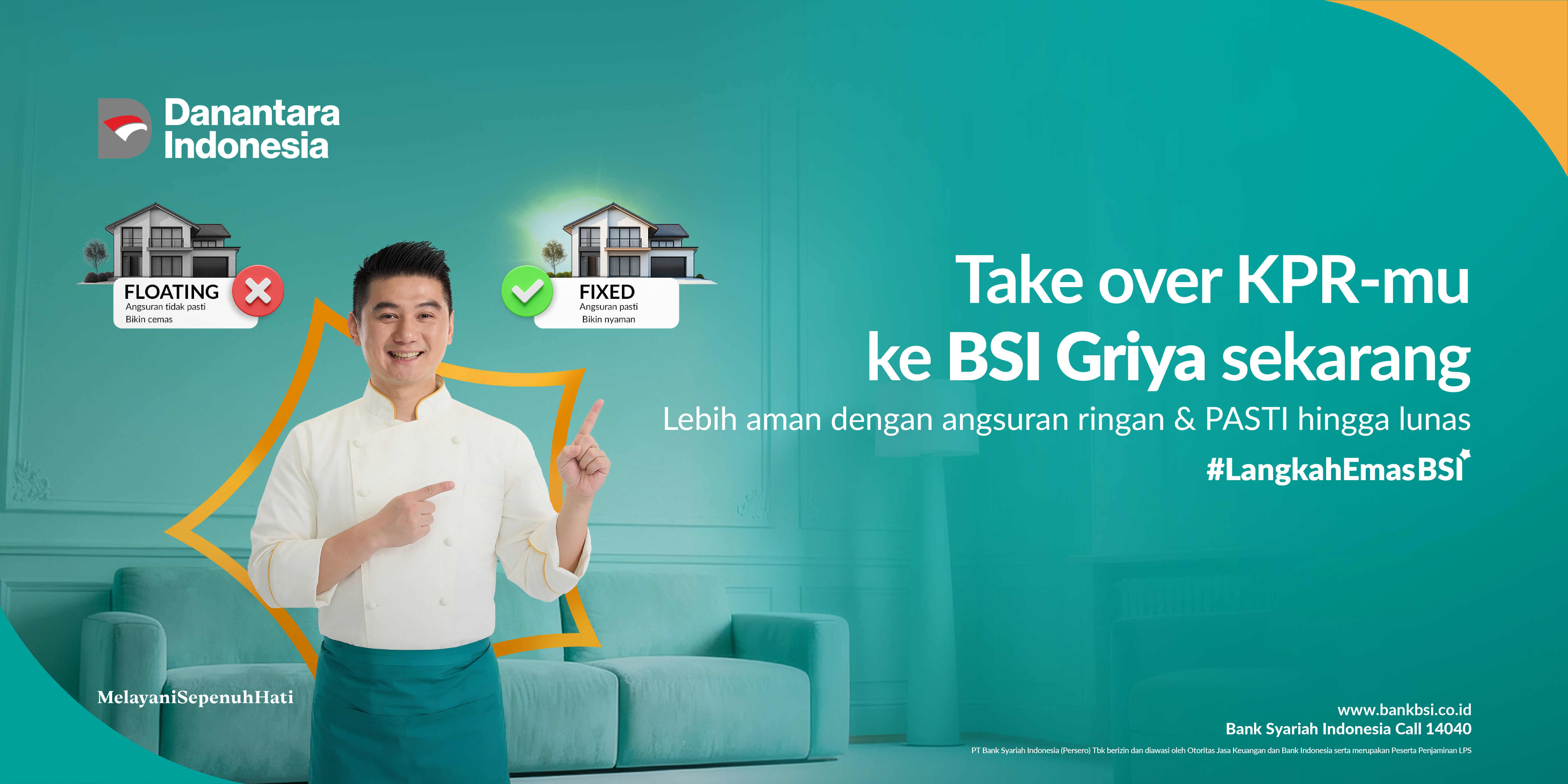 | 6. | Bagaimana cara membayar kewajiban angsuran BSI Griya Take Over setiap bulannya? | Kewajiban nasabah akan didebet otomatis dari rekening penggajian nasabah di BSI atau rekening BSI yang berafiliasi dengan pembiayaan BSI Griya sampai jatuh tempo pembiayaan berakhir. |