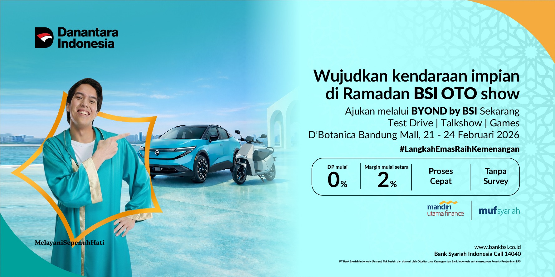 Ramadan BSI OTO Show 2026 dilaksanakan secara offline di D'botanica Mall Bandung, pada tanggal 21 – 24 Februari 2026.