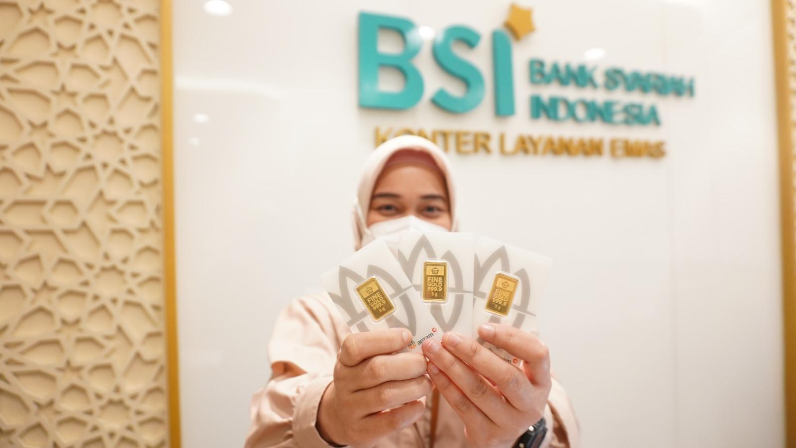 Maka untuk mendorong masyarakat memiliki investasi emas sejak dini, BSI memfasilitasi layanan emas di lebih dari 1.000 outlet BSI seluruh Indonesia juga layanan digital melalui BSI Mobile untuk cicil emas, tabung emas & Gadai Emas, produk cicil emas dengan margin yang kompetitif serta cicilan ringan yang dapat diangsur hingga jangka waktu maksimal 5 tahun.