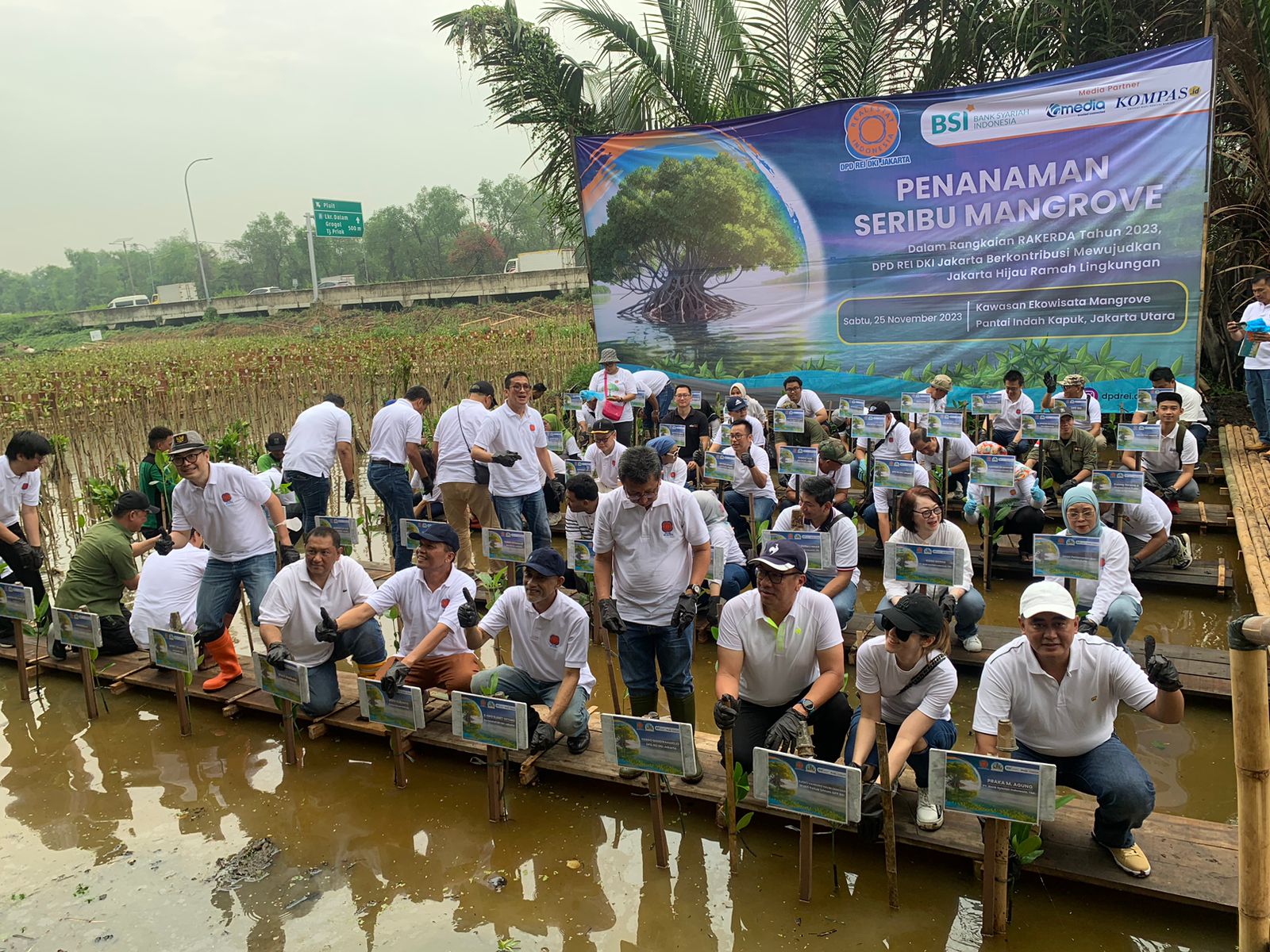 Sebagai bentuk aksi peduli lingkungan, BSI bersama REI DKI Jakarta dan Pemda DKI juga melakukan penanaman 1.000 pohon mangrove di kawasan Pantai Indah Kapuk, Jakarta. Aksi hijau bersama ini sebagai bentuk dukungan para pihak terhadap peningkatan serapan karbon sekaligus upaya untuk menekan konsentrasi gas rumah kaca di udara sebagai bagian dari mitigasi perubahan iklim.