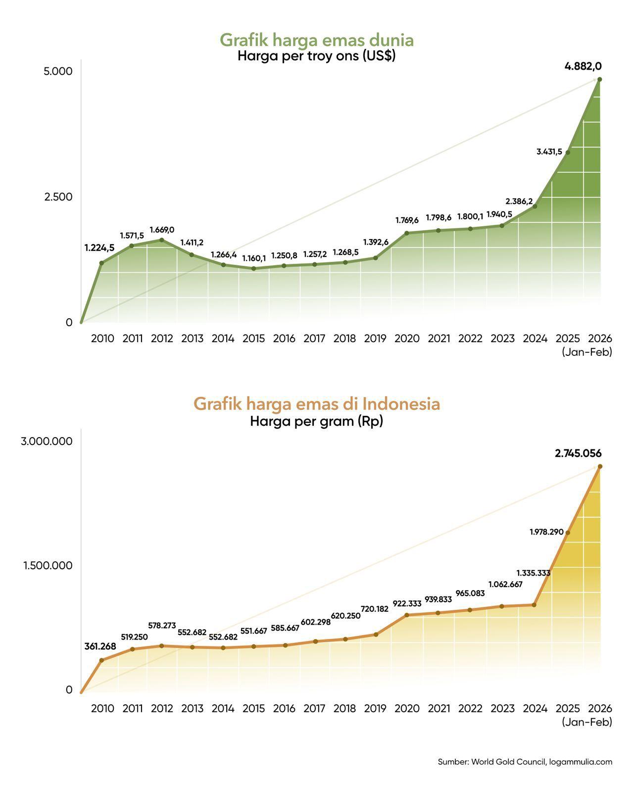Selama 25 tahun terakhir (2000–2025), emas mencatat kenaikan nilai kumulatif lebih dari 1000%. Ketahanan nilainya dapat dilihat melalui ilustrasi biaya haji. Pada 2005, biaya haji Rp25,4 juta setara sekitar 169 gram emas (harga Rp150 ribu/gram). Dua dekade kemudian, pada 2025, biaya Rp55,4 juta ekuivalen dengan sekitar 22 gram emas (harga Rp2,5 juta/gram).