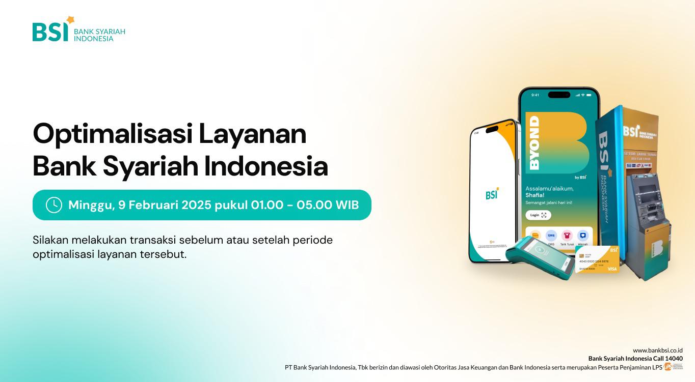Informasi lebih lanjut, nasabah dapat menghubungi BSI Call 14040, Official whatsapp Bank BSI 0815-8411-4040, website BSI www.bankbsi.co.id, akun media social Bank BSI pada @banksyariahindonesia (Instagram, Facebook, dan Twitter).