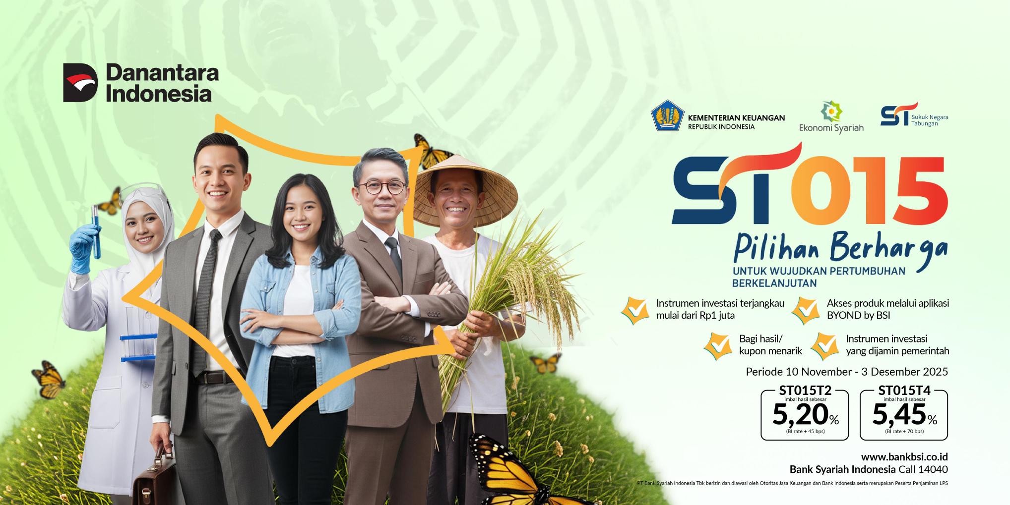 | 1. | Bentuk ST015: | Surat Berharga Syariah Negara (SBSN) tanpa warkat (scripless) dan tidak dapat diperdagangkan di pasar sekunder. |