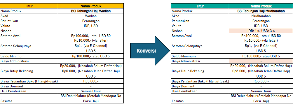 | 4. | Bagaimana cara nasabah melakukan konversi BSI Tabungan Haji Wadiah? |