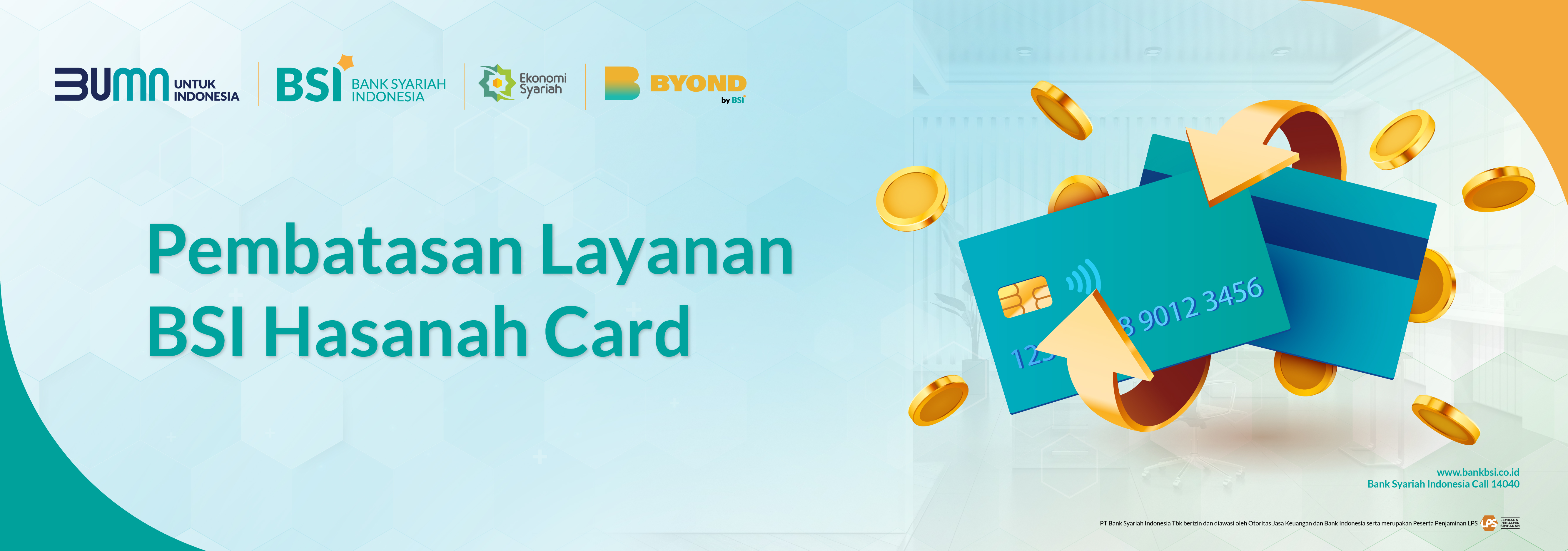 Terdapat pembatasan layanan BSI Hasanah Card pada akhir pekan tanggal 18 – 19 Januari 2025. Info lebih lengkap dapat menghubungi BSI Call 14040