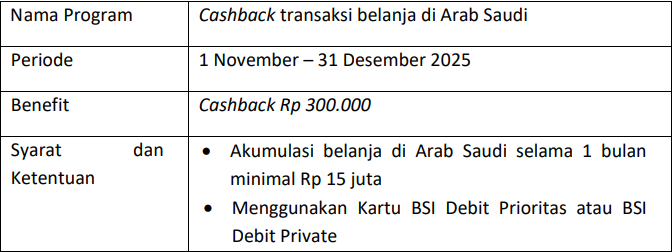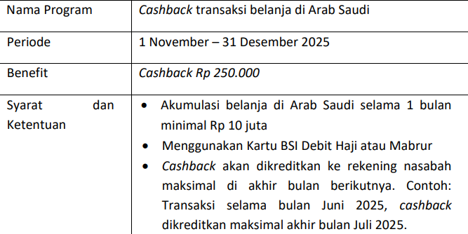 Program Cashback Belanja Kartu BSI Debit Haji/ Mabrur