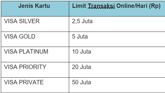 Berapa limit harian kartu untuk bertransaksi BSI Visa Debit Online? |