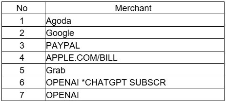 Khusus untuk transaksi non 3D-secure, transaksi hanya dapat dilakukan terbatas pada merchant :