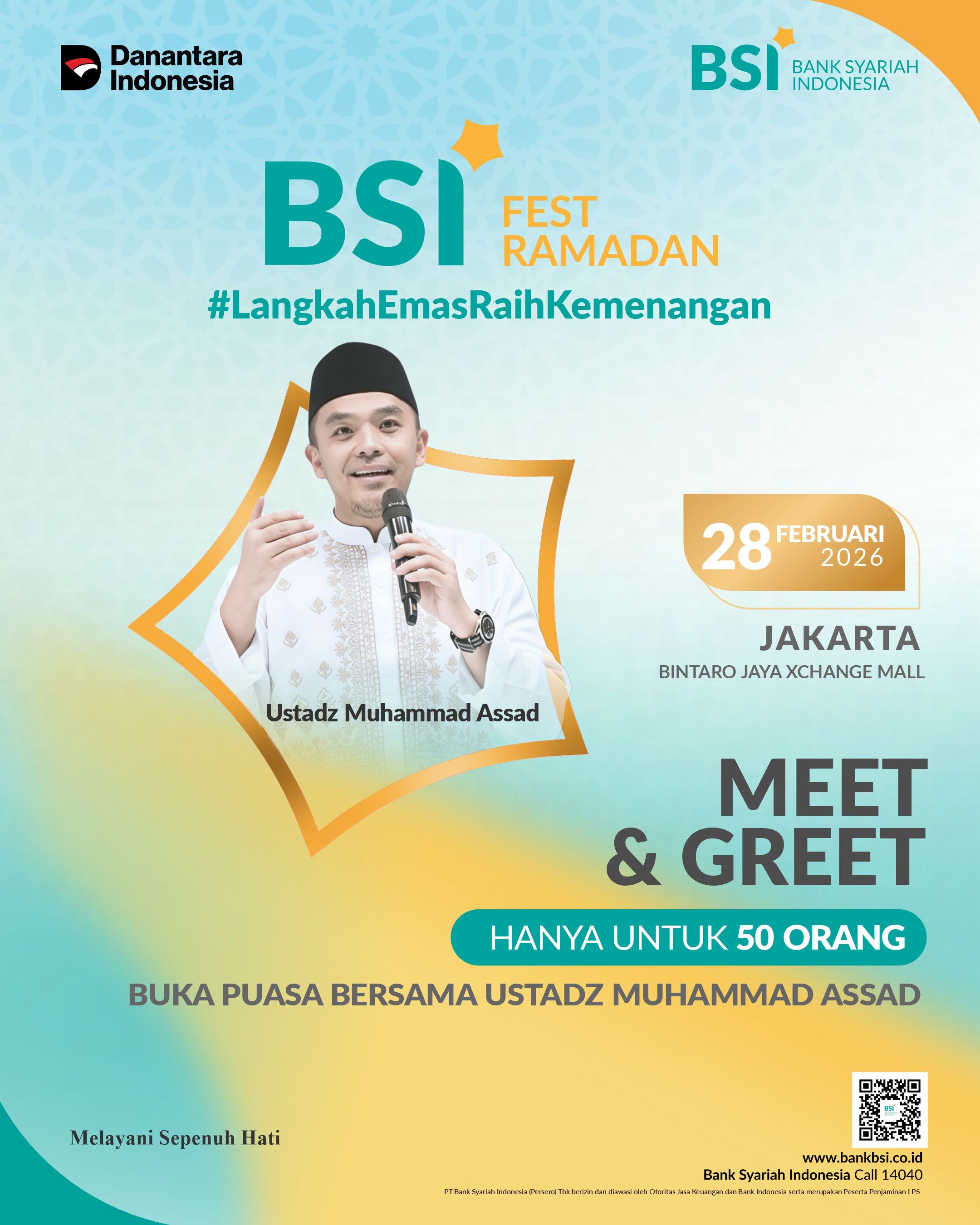 Melalui BSI Fest Ramadan, BSI menegaskan perannya sebagai Sahabat Finansial, Sahabat Sosial, dan Sahabat Spiritual bagi masyarakat Indonesia. Tidak sekadar menghadirkan layanan perbankan, BSI berupaya menciptakan ekosistem Ramadan yang menginspirasi, inklusif, dan berdampak positif.