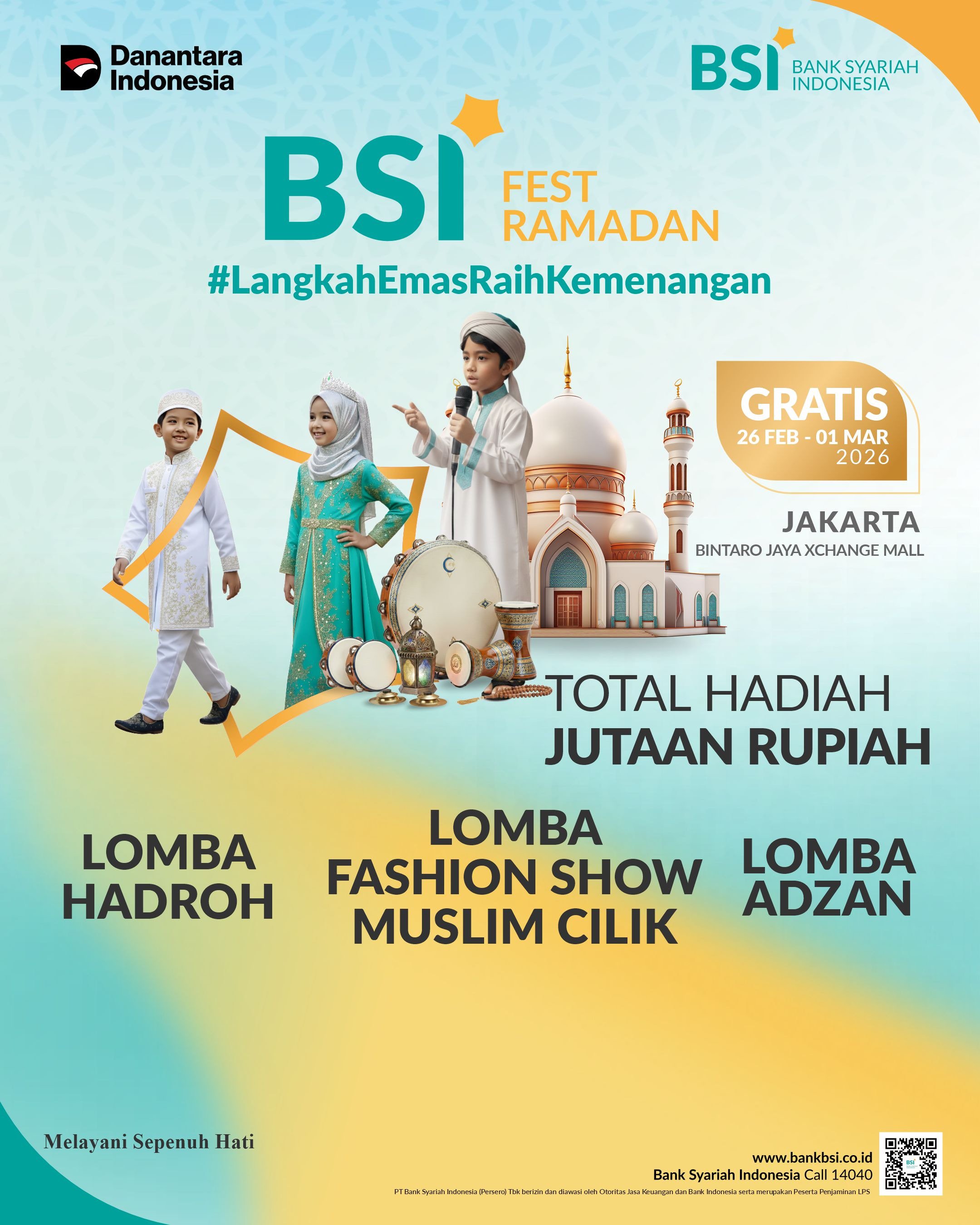Dalam rangka menyemarakkan bulan suci Ramadan, Bank Syariah Indonesia (BSI) menghadirkan BSI Fest Ramadan sebagai rangkaian kegiatan inspiratif yang menggabungkan nilai spiritual, hiburan Islami, dan solusi finansial syariah dalam satu pengalaman yang bermakna