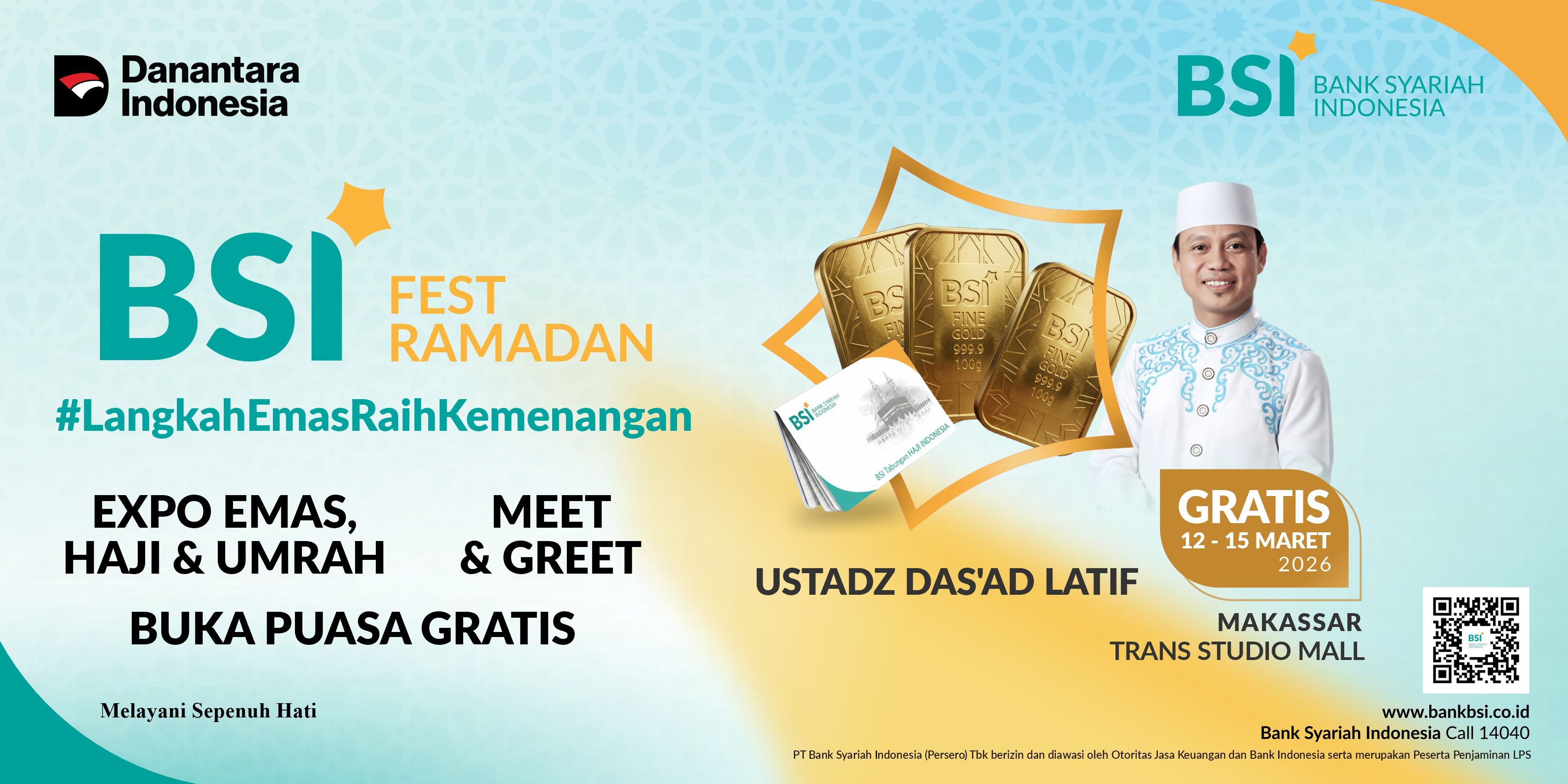 BSI Fest Ramadan bertema #LangkahEmasRaihKemenangan menjadi wujud komitmen BSI sebagai Sahabat Finansial, Sosial, dan Spiritual dalam mendampingi masyarakat menjalani Ramadan yang lebih bermakna baik secara rohani maupun finansial.