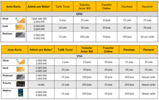 Untuk pegawai (BSI Mitraguna Berkah, BSI Emas, BSI Griya, BSI OTO serta produk investasi)