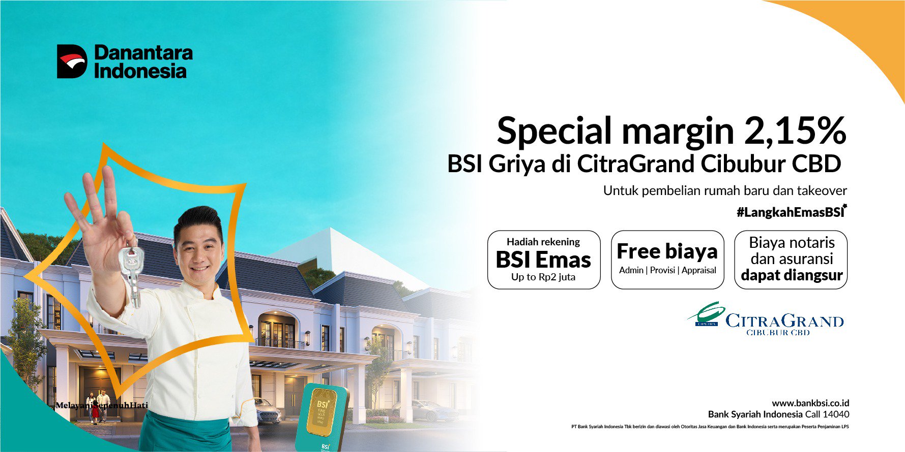 Special Margin 2,15% BSI Griya di CitraGrand Cibubur CBD Untuk Pembelian Rumah Baru dan Takeover!