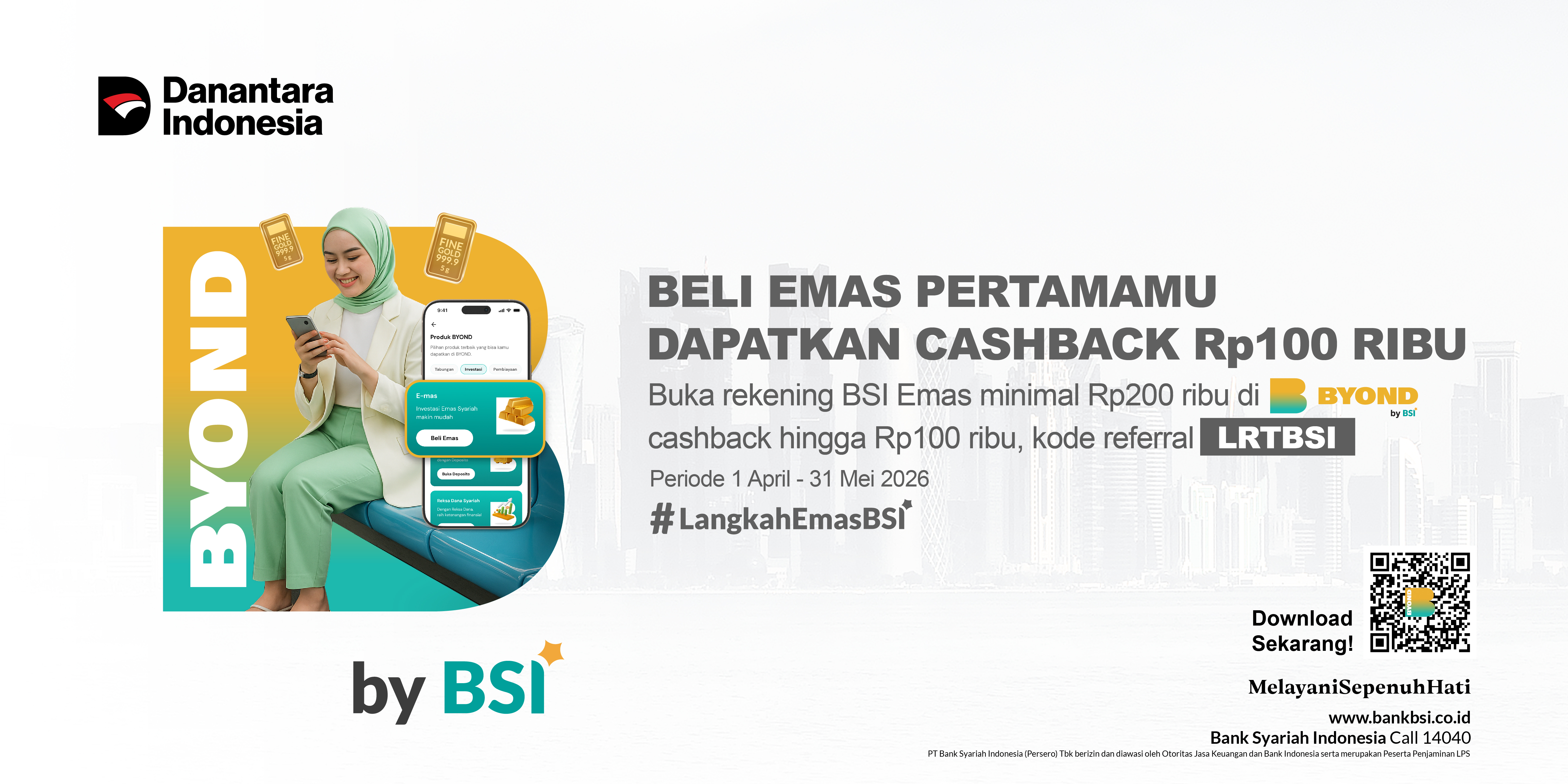 | 2. | Nasabah diwajibkan melakukan pembukaan investasi e-mas melalui BYOND by BSI menggunanan kode referral LRTBSI dengan Pembelian Pertama Minimal Sebesar Rp 200.000,- selama periode program (tidak berlaku akumulasi). |