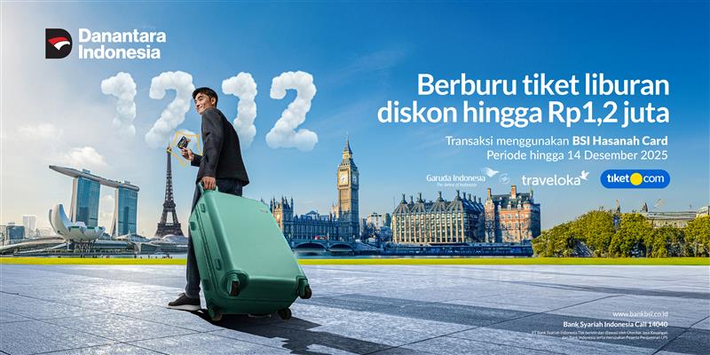 | 2. | Tiket.com | Diskon 5% hingga Rp 50 ribu minimal transaksi Rp 400 ribu dengan kode promo BSI50. Kuota 20 per hari | Hingga 31 Desember 2025 | BSI50 |