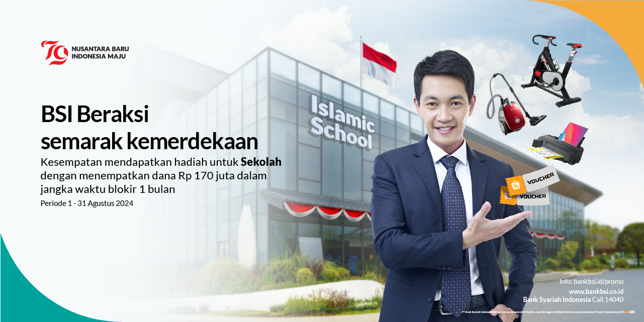 | 1 | Deskripsi Program/Promo | Penempatan dana fresh fund BSI BERAKSI Semarak Kemerdekaan untuk sekolah senilai Rp170 juta dengan jangka waktu 1 bulan |